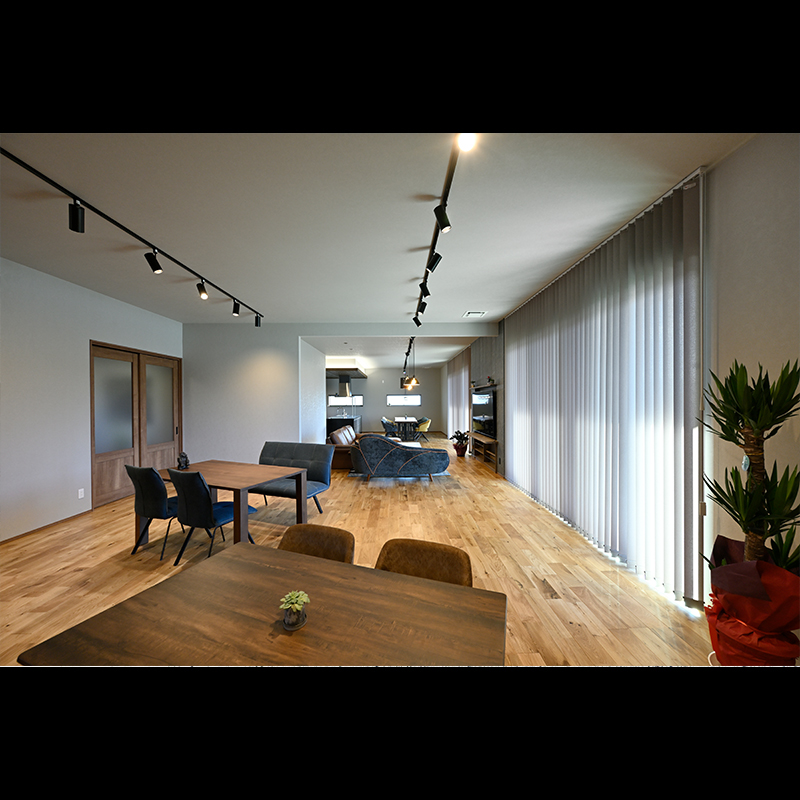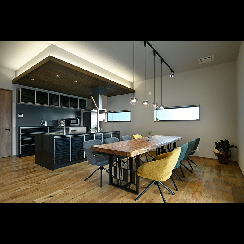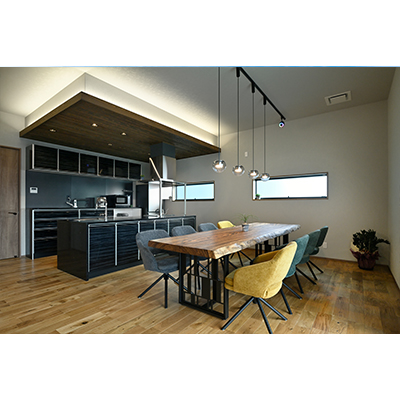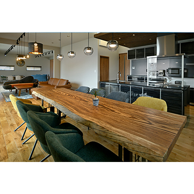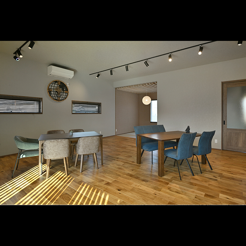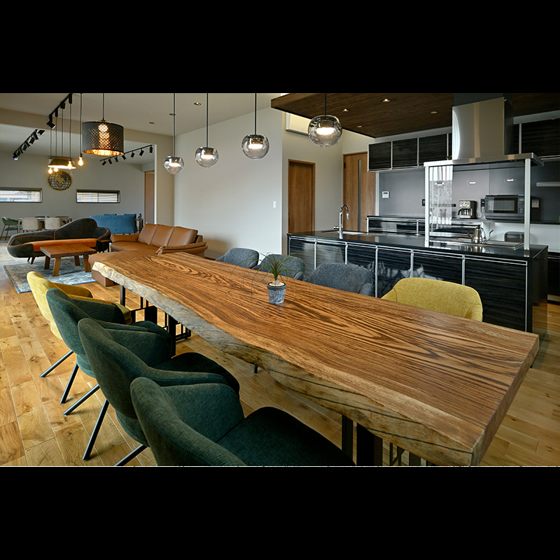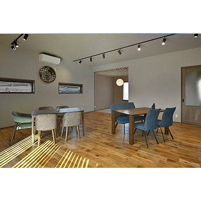 「仲間がたくさん集まれる場所を」と、考え造られたのがツーバイシックスのこの住まい。平家で柱を飛ばし55帖のLDK空間を実現。そして、GX志向住宅で性能にも自信がある高性能な住まい。